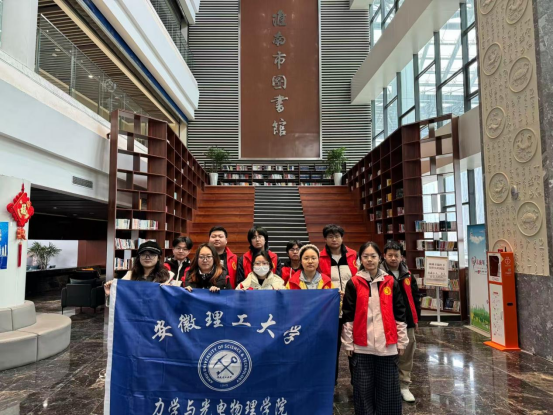 三月春风送暖,雷锋精神传扬。在第63个“学雷锋纪念日”来临之际,为深入践行雷锋精神,弘扬志愿服务新风尚,安徽理工大学力学与光电物理学院光电信息24-3班团支部组织11名青年志愿者,走进淮南市图书馆开展主题志愿服务活动,以实际行动为书香阵地保驾护航,让青春力量在公益服务中闪光。