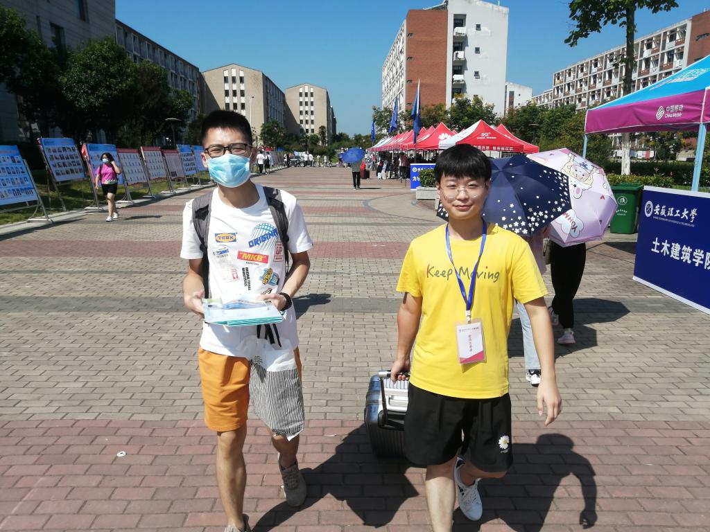 迎新第一天,由学生党员组成的志愿服务队统一佩戴工作证,早早到达迎新报到点,以饱满的热情指引新同学报到。在迎新时,志愿者主动热情地接过沉甸甸的行李箱,引领他们办理注册报到手续;并向新生传递生活、学习上的丰富经验,强调防诈骗知识、宿舍安全用电等有关注意事项,帮助他们更快适应大学;同时志愿者还叮嘱每个新生,做好疫情期间的个人防护,重视个人健康安全。