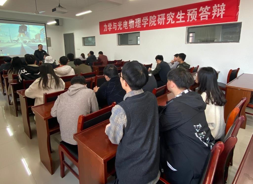 3月24日下午,力物学院在院报告厅顺利完成2021届光电系统与控制专业硕士研究生论文答辩工作。参加预答辩的研究生共11名,答辩组老师5人,答辩秘书1人,2019级研究生11人观摩了整个预答辩过程。