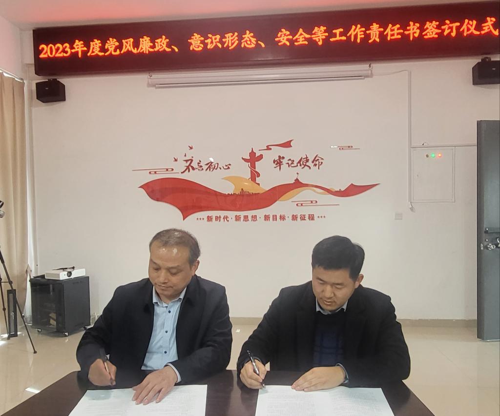 会后,学院同各系(室)签订2023年党风廉政建设、保密、安全稳定等责任书。