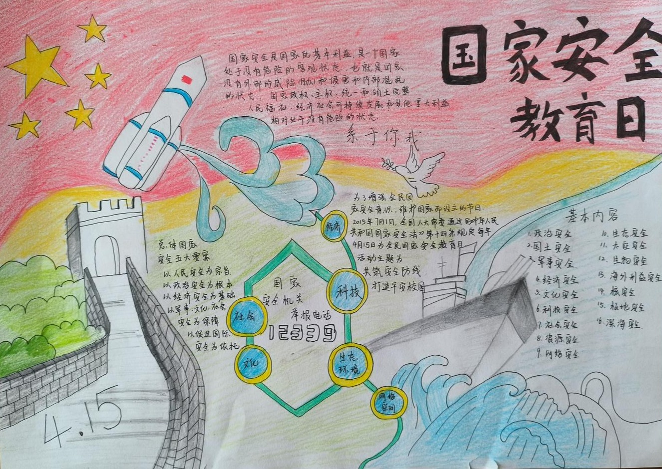 力物学院围绕总体国家安全观和国家安全各领域,利用线上线下多平台加大相关知识和活动的宣传推动力度。通过主题班会、手抄报绘制宣讲国家安全教育知识,通过微信公众号、易班平台推送国家安全教育主题推文,广泛开展多形式主题教育,引导师生掌握有关知识和技术,帮助师生随时随地学习相关知识。