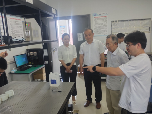周先意、王群实地走访了半导体光电材料与器件实验室、声光调控实验室等,调研学院科研和教学工作,并与光电物理系吴宏伟、公共物理系蓝雷雷等教师进行了个别深入交流指导。