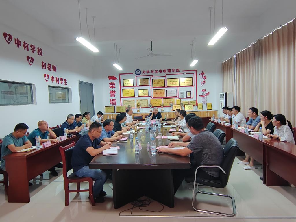7月24日-27日,应力学与光电物理学院邀请,中国科学技术大学原副校长周先意教授和国家杰出青年基金获得者、中国科学技术大学物理学院王群教授来院指导工作。在院期间,召开四场座谈交流会和学术分享会,力物学院领导、系主任、部分教师等参加了座谈交流。
