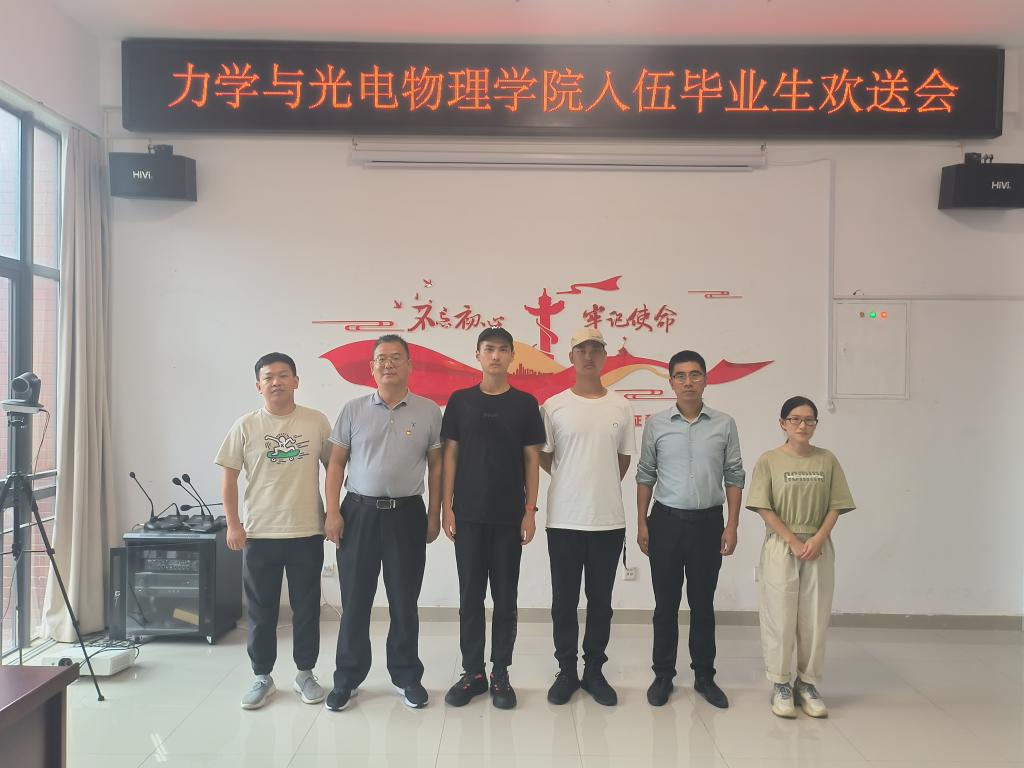 9月13日下午,力物学院举办2023年秋季大学生应征入伍欢送会,温馨送别2023届入伍毕业生。学院党委副书记孙东升、副院长卢小雨、2023届毕业生代表、辅导员等参加了会议。会议由孙东升主持。
