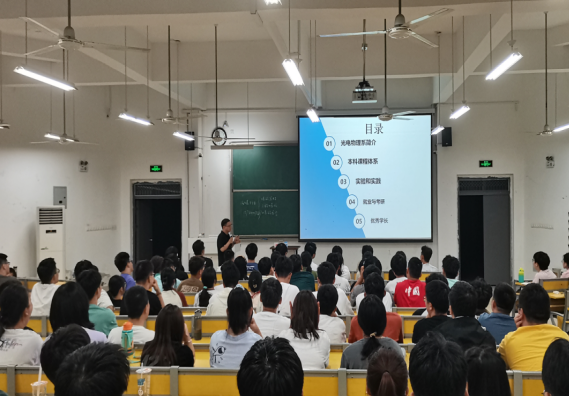 2023年9月15日晚,力物学院光电物理系主任李洋教授和2023级辅导员朱浩男在明理楼102教室为新生开展了专业规划及入学教育,旨在让同学们全面的了解专业知识,增强同学们对未来学习生活的自信。