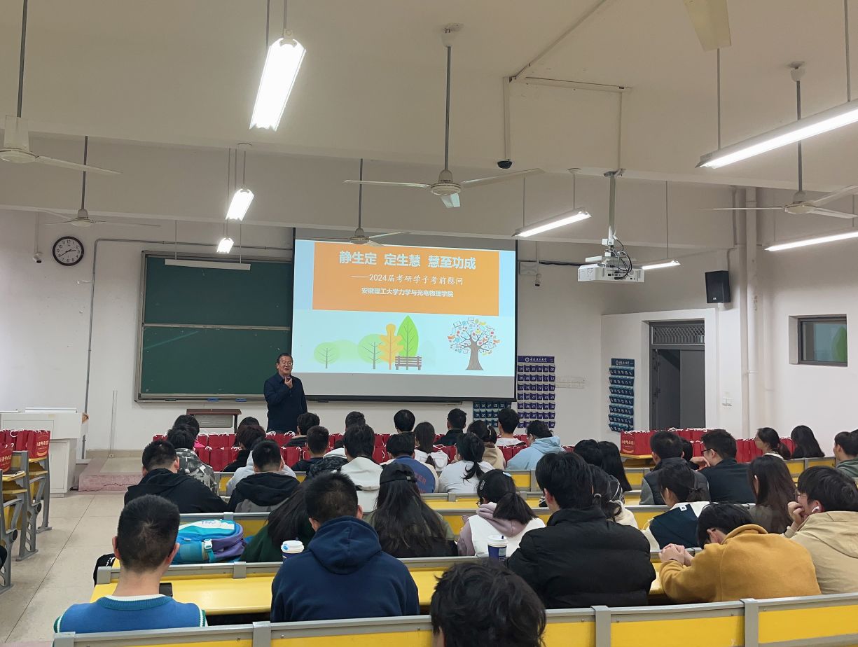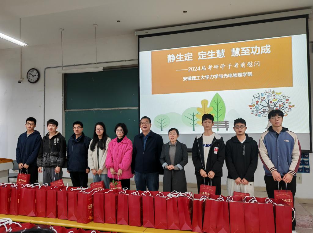 在2024年全国硕士研究生招生考试即将到来之际,为缓解考研学子压力,坚定冲刺信心,11月22日下午,力物学院在明理南314开展考研慰问活动。学院党委副书记(主持工作)孙东升、副院长卢小雨、学生工作负责人出席会议。2020级全体考研学生参加会议。