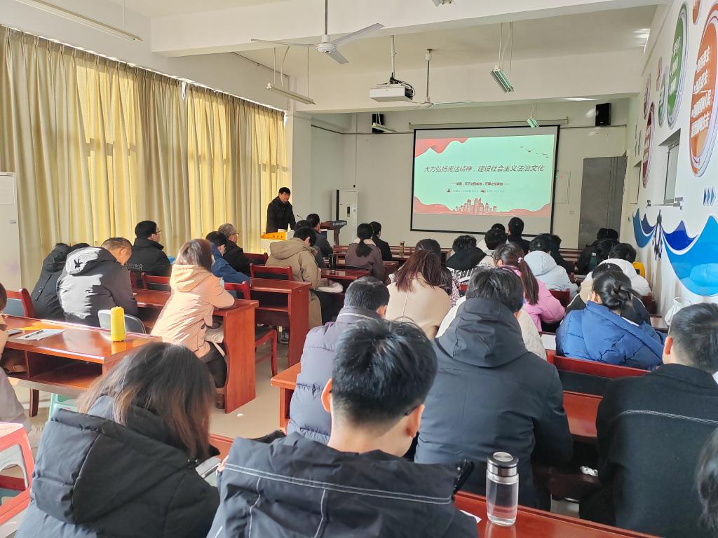 12月2日上午,力物学院邀请人文学院副院长代大为在明道楼A318为学院师生作“大力弘扬宪法精神,建设社会主义法治文化”为主题的专题讲座。讲座中代大为特别强调要坚持宪法自信,我国宪法是历史经验的总结、现实成果的确认、未来发展的指引,是中华民族站起来、富起来、强起来的根本法的确认和保障,是我们国家和人民经受住各种困难和风险考验、始终沿着中国特色社会主义道路前进的根本法制保证。他号召广大师生在工作、学习和生活中严格依法规范自己的行为,做学法、知法、懂法、守法的新时代法治模范。