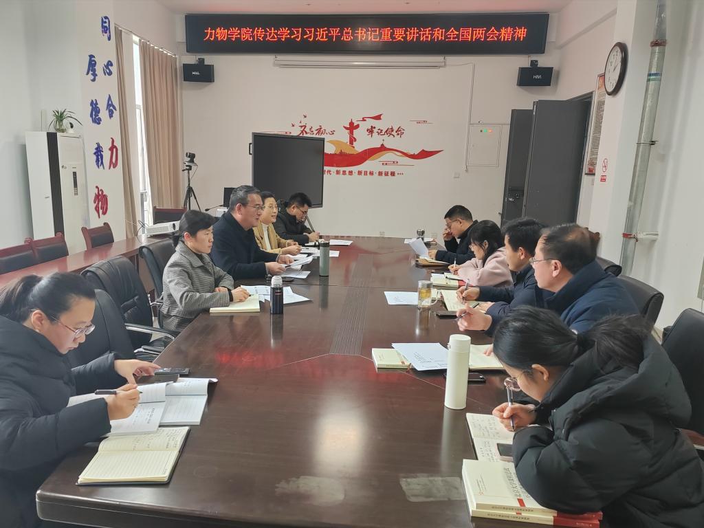 3月16日,力学与光电物理学院党委在明道楼A320会议室召开学习会议,传达学习习近平总书记重要讲话和全国两会精神。学院领导班子成员、系主任、党支部书记参加了会议。