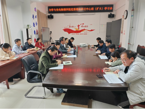 4月7日下午,在明道楼A320会议室,力物学院召开党委理论学习中心组(扩大)学习会,专题学习新修订的《中国共产党纪律处分条例》。会议由力物学院党委书记孙东升主持,学院党政领导班子成员和各党支部书记参加会议。