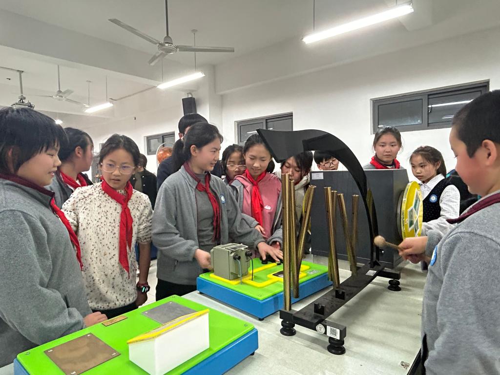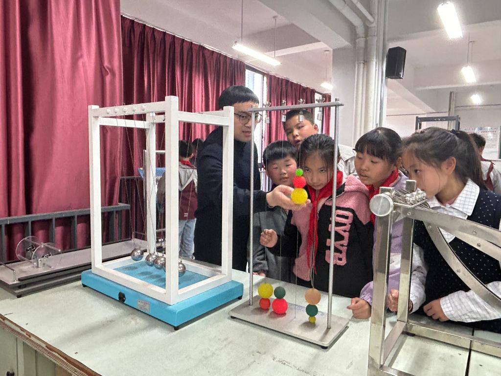 在实验室,没有书中晦涩难懂的公式、生僻枯燥的专业名词;有的是“柱面成像”、“电动机效应”、“动量守恒”、“丁达尔效应”、“光的色散”等各种各样直观生动的物理现象。在实验中心教工党支部教师的演示下,原本抽象的物理现象如同变戏法一样形象得地展示了出来,牢牢吸引了孩子们的注意力。他们激动地看着,专注地听着,迫不及待地想要自己去体验、去感受、去学习、去探索!一下午的时间不知不觉过去,孩子们仍意犹未尽,充满了对神奇力、热、光、电物理世界的极大兴趣,纷纷问老师“下次什么时候能再来?”