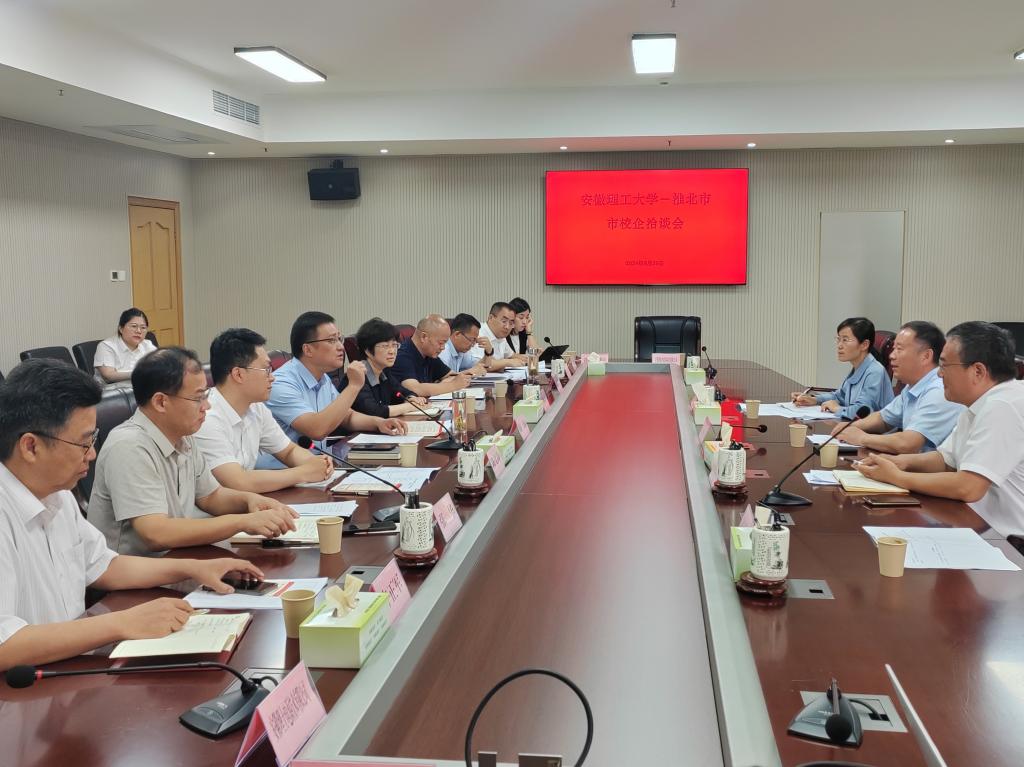 为深入贯彻落实党中央、国务院关于高校毕业生就业工作的决策部署,扎实推进“访企拓岗促就业”专项行动,进一步深化校企合作、推进产教研融合。6月26日,校党委常委、副校长宫能平带队前往淮北市开展“访企拓岗促就业”专项行动。淮北市副市长姚珂,市统战部、共青团市委、市科技局、市工业和信息化局、市人力资源和社会保障局、市公共就业和人才服务中心等相关负责人热情接待了我校一行。