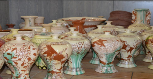 7月6日下午,实践团来到界首市文化活动中心。在讲解员的带领下,团队成员了解到界首市彩陶起源于隋朝,三彩风格受影响于唐三彩,刻画内容受影响于明清时期的戏曲,发展在七八十年代最为鼎盛。现在彩陶不拘于过去实用型家具风格,发展出多样化的风格。队员们纷纷赞叹界首彩陶活力之强。