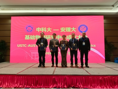 11月8日上午,中国科学技术大学-安徽理工大学(以下简称:中科大-安理大)基础物理研究中心成立大会在合肥市隆重举行,校党委常委、副校长张平松、中国科学技术大学物理学院党委书记周正威出席活动并致辞。校科研部部长刘辉主持大会。中国科学技术大学原副校长、安徽理工大学力学与光电物理学院名誉院长周先意,中国科学技术大学天文与空间科学学院副院长孔旭、物理学院教授韩良、陈向军、林子敬、彭新华、刘建北,安徽理工大学力学与光电物理学院负责人,以及40余名师生代表参加会议。