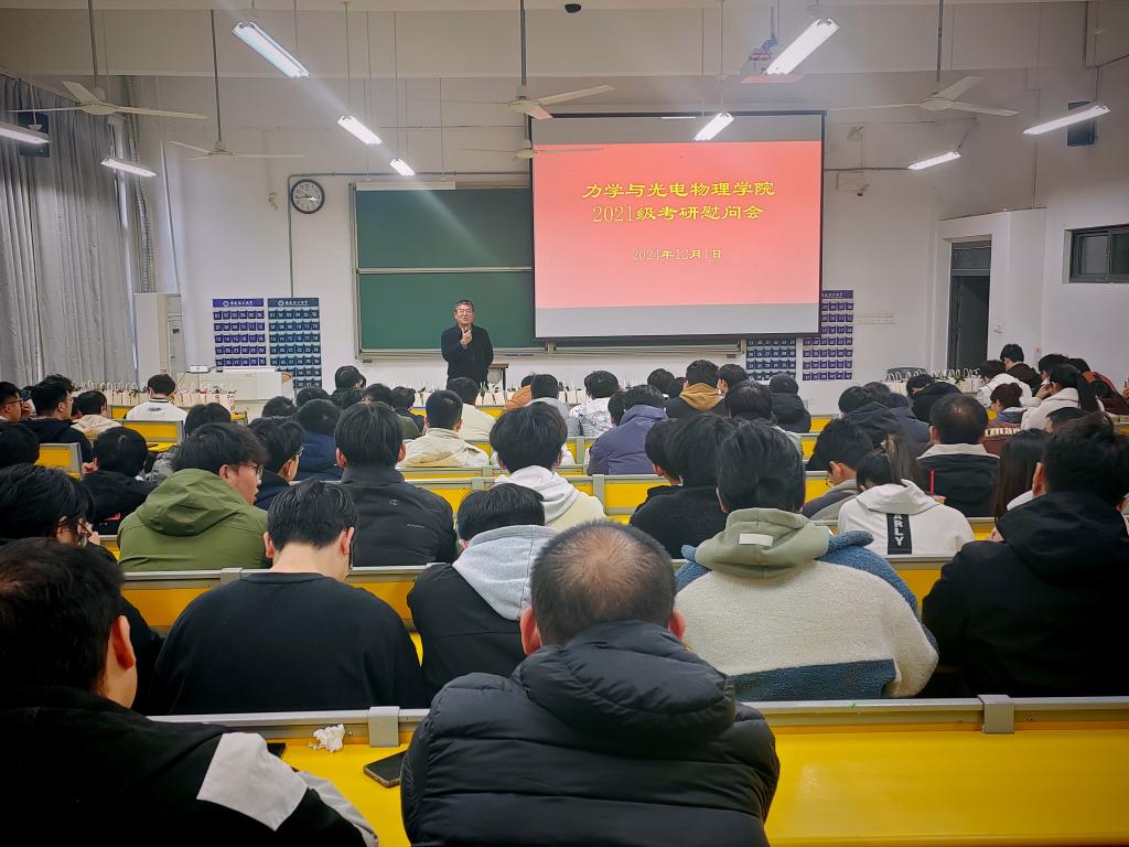 12月1日下午,在2025年硕士研究生入学考试即将来临之际,力物学院在明理南112教室举办考研慰问大会。学院党委书记孙东升、党委副书记郑孝莲、2025届毕业年级辅导员参加慰问活动,共同为考研学子送上温暖与祝福。