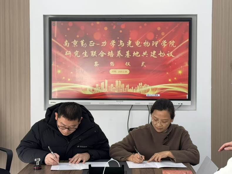 为进一步探索与创新研究生培养模式,提高研究生培养质量,加强科技交流。1月18日和19日,安徽理工大学力学与光电物理学院高娟一行走访南京多家企业,分别与南京勤正信息科技有限公司和易知谷科技有限公司签订研究生联合培养基地共建协议。
