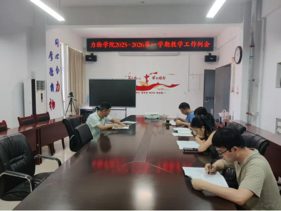 8月29日上午,力物学院在明道楼A320会议室召开了2025年秋季学期第一次教学工作例会,安排部署近期教学重点工作。各系(室)主任参加会议,会议由学院副院长卢小雨主持。