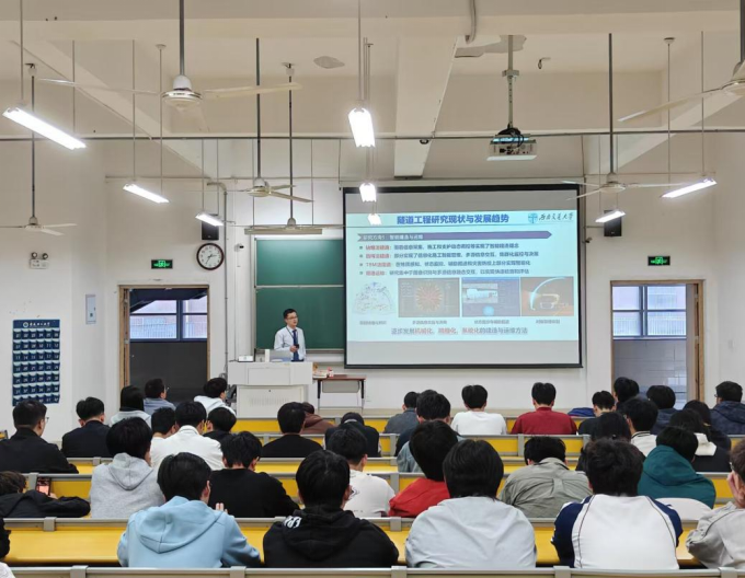 报告交流环节,胡教授同师生探讨了深度学习在隧道工程中的应用前景,拓宽了师生的学术视野,为AI+力学提供了新思路。