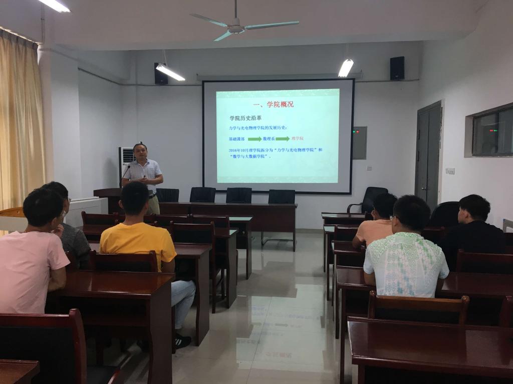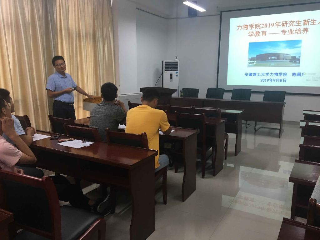 9月8日下午,力物学院在院报告厅举行了2019级光电系统与控制专业研究生新生入学教育活动。业务副院长圣宗强教授、硕士点建设办公室主任陈昌兆副教授和全体研究新生参加了活动。