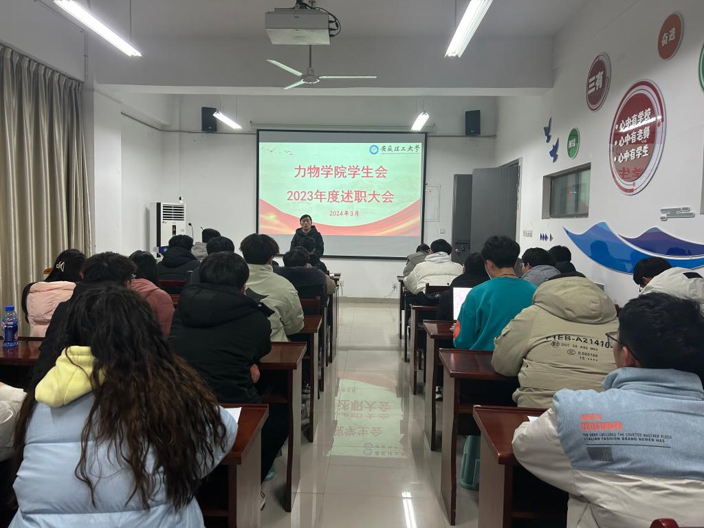 为深入学习贯彻习近平新时代中国特色社会主义思想,推动学生会组织改革成果巩固深化,加强学院各级学生会工作交流,3月5日晚,力物学院2023-2024学年第一学期学生会组织述职评议大会在学院“一站式”学生社区召开。学院学生工作负责人、全体辅导员、各级学生会组织骨干、各班级团支书参加了本次述职评议大会。