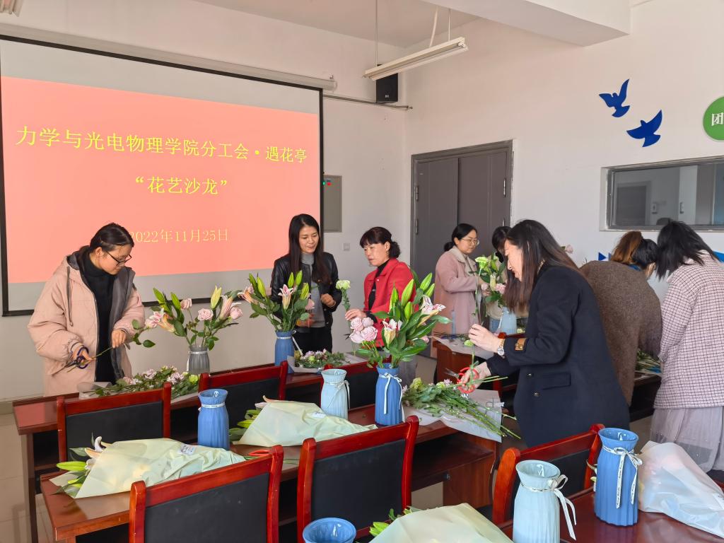 为进一步丰富女教工文化生活,引导教职工以更饱满的热情投入到工作和生活中,学院分工会女工委员会精心组织准备,于11月25日下午,在学院三楼报告厅开展了女教工插花体验活动和技艺知识讲座,30余名女教工参加。