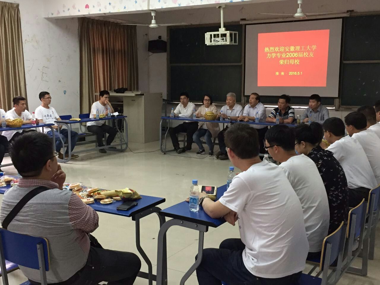 一朝离别,赴天南海北;十年聚首,忆青葱岁月。5月1日下午,理学院理论与应用力学专业2006届校友十周年联谊会在学院学术报告厅热烈举行。机关党委书记、效能建设办公室主任兼合作发展处处长武有水、理学院院长经来旺、行政副院长李勇、党委副书记张旸、医学院党委副书记张可佳、力学系主任卢小雨、辅导员李强等老师出席会议。