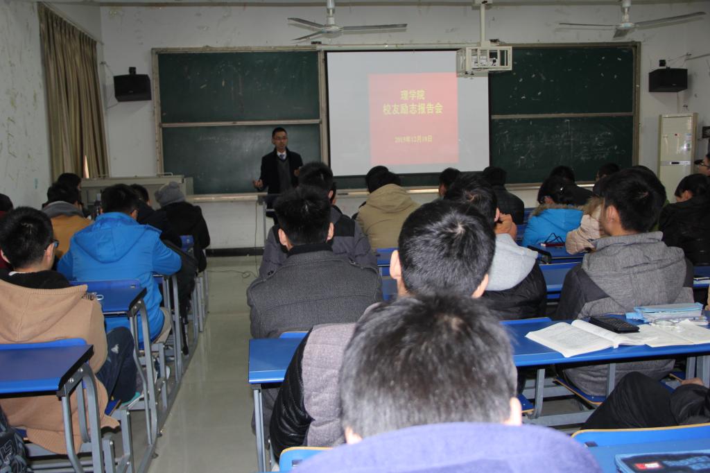 12月18日下午,理学院邀请盾安(芜湖)中元自控有限公司总经理助理(知名校友)汪李坤在学术报告厅举行励志报告会。学院党委副书记张旸主持。理学院150余名学生聆听了报告。