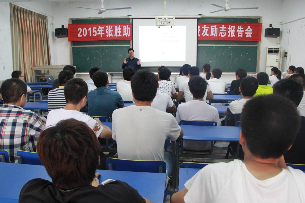 捐赠仪式结束后,张胜为全体同学做了题为《十年如风、初心逐梦》的励志报告。张胜结合自己的成长、发展、创业经历,讲述了自己成长的故事,并希望广大同学志存高远、积极学习、勤于思考、做好当下。整场报告内容丰富、语言生动,使同学们深受教育,并对未来充满了信心,报告会在同学们热烈的掌声中结束。