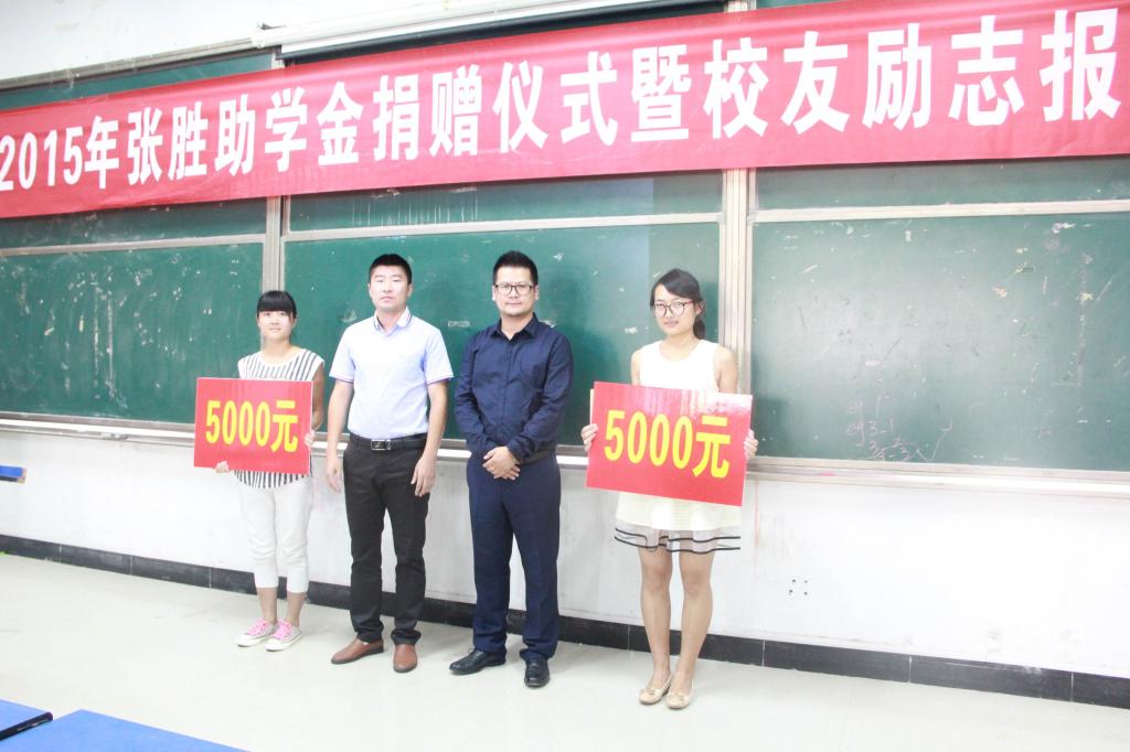 9月3日下午3:00,理学院在学术报告厅隆重举行2015年张胜助学金捐赠仪式暨校友励志报告会。院党委副书记张旸主持捐赠仪式,一百二十余名学生参加捐赠仪式并聆听了报告。