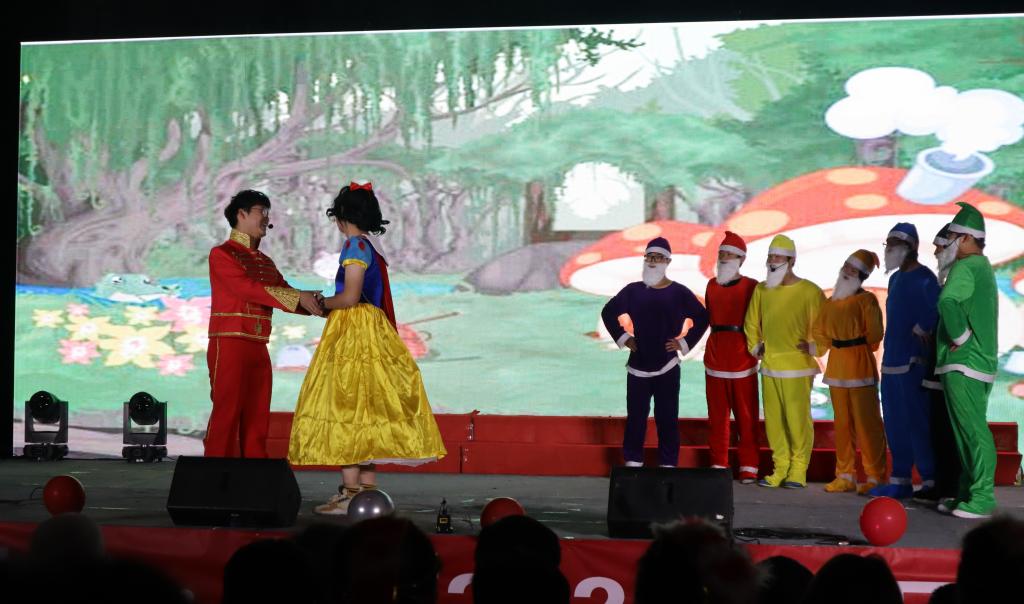 晚会由“致敬白衣山河无恙”、“凛冬散尽星河长明”、“少年心性意气风发”三大篇章组成。一曲弹唱《生活因你而火热》拉开了元旦晚会的帷幕,相声《小童星》、小品《白雪公主与七个小矮人(新编)》等语言类节目以风趣的言语、生动的表演,引得台下欢笑连连,互动不断,心理情景剧《致春》和手语表演《喜欢你》向奋战在抗疫前线的英雄们致敬,民族舞《心上的罗如》用优美的舞姿展现了退休教职工风采,现代舞《lovesick girls》将晚会推至高潮,令人心动的抽奖和游戏环节更是让现场沸腾,晚会在大合唱《夜空中最亮的星》的歌声中落下帷幕。