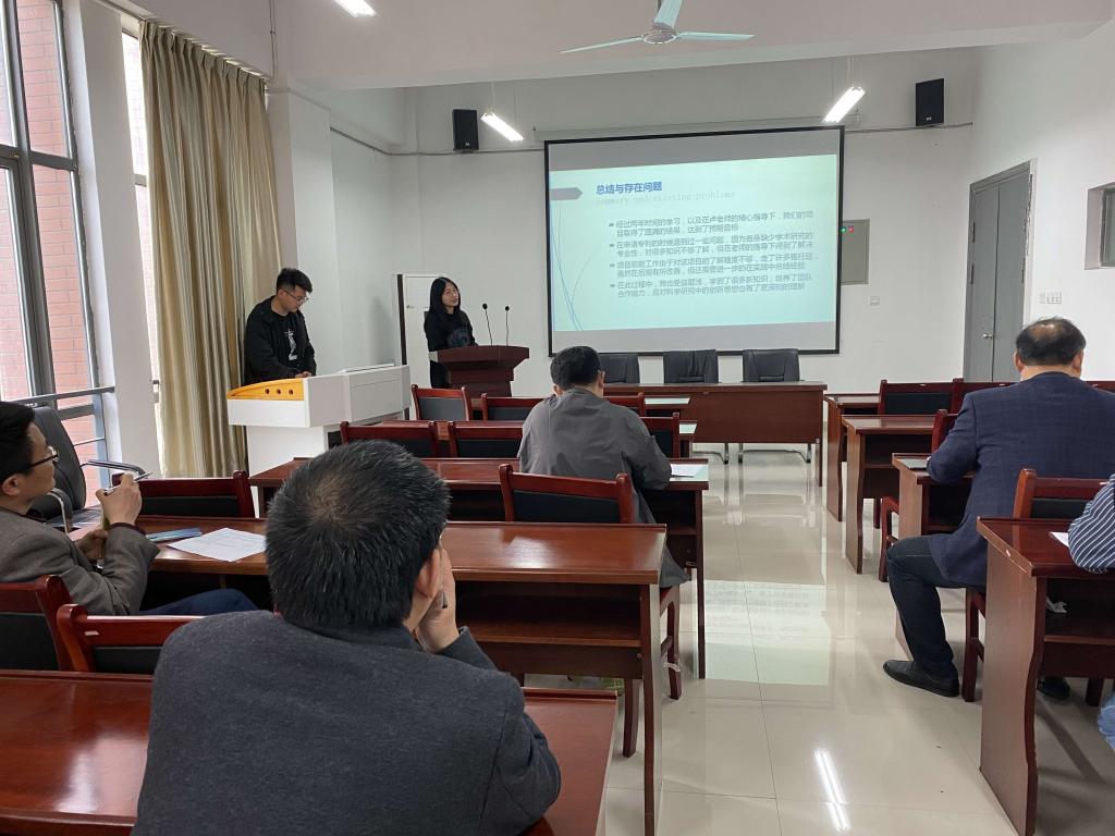 报告会上,5位项目负责人分别从项目的背景、目标与内容、过程与 方法、研究成果以及展望等方面对报告进行了梳理和总结,重点突出了各自的研究方法与特色。评审老师依据结题报告内容、项目研究成 果和现场汇报情况进行打分,确定验收等级。会后,崔巍结合自己研究生学习时的经历,给学弟学妹们就创新创业方面作了交流。