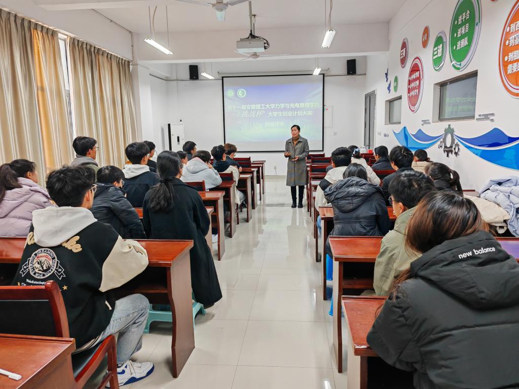 11月25日下午,力物学院在明道楼三楼报告厅举行第十一届安徽理工大学“挑战杯”大学生创业计划竞赛院级选拔赛。选拔赛邀请学校相关专家教授担任评委。选拔赛由力物学院学生工作负责人主持。