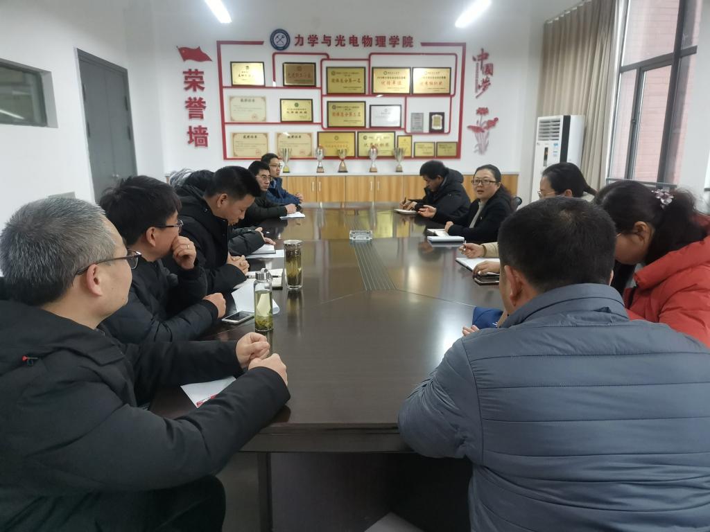 1月7日下午,力物学院召开关于加强研究生思政教育工作导师交流座谈会。学院党委书记刘艳与研究生导师代表交流座谈。座谈会由副院长高娟主持。