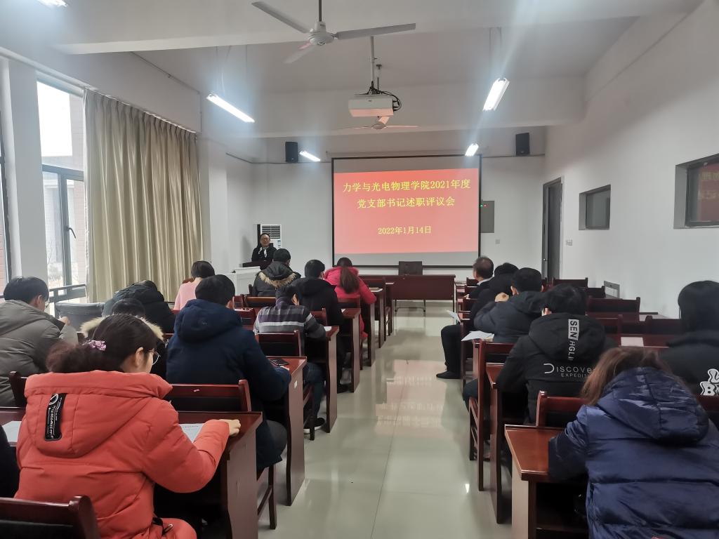 1月14日下午,力物学院在明道楼A323会议室召开2021年党支部书记抓党建述职评议会,评议会与学院党支部年度工作考核结合进行。学院党委领导班子成员、各党支部书记、全体辅导员、教师代表、学生代表等参加会议。会议由学院党委书记刘艳主持。
