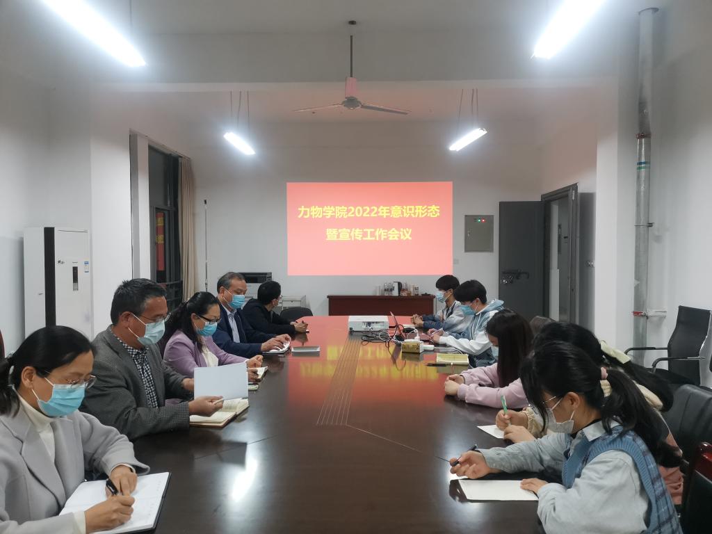 4月17日上午,力物学院在明道楼A318会议室召开2022年意识形态暨宣传工作专题会议。会议由学院党委书记刘艳主持。