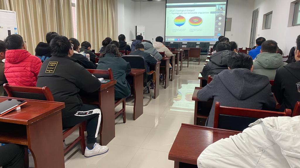应科研部、国际交流与合作处和力学与光电物理学院邀请,12月15日香港科技大学杨镖副教授作了题为《Non-Abelian topological charges(非阿贝尔拓扑荷)》的在线学术报告,报告会在学院报告厅同步举行,由副院长高娟主持,全体研究生与部分青年教师共计80余人参加了报告会。