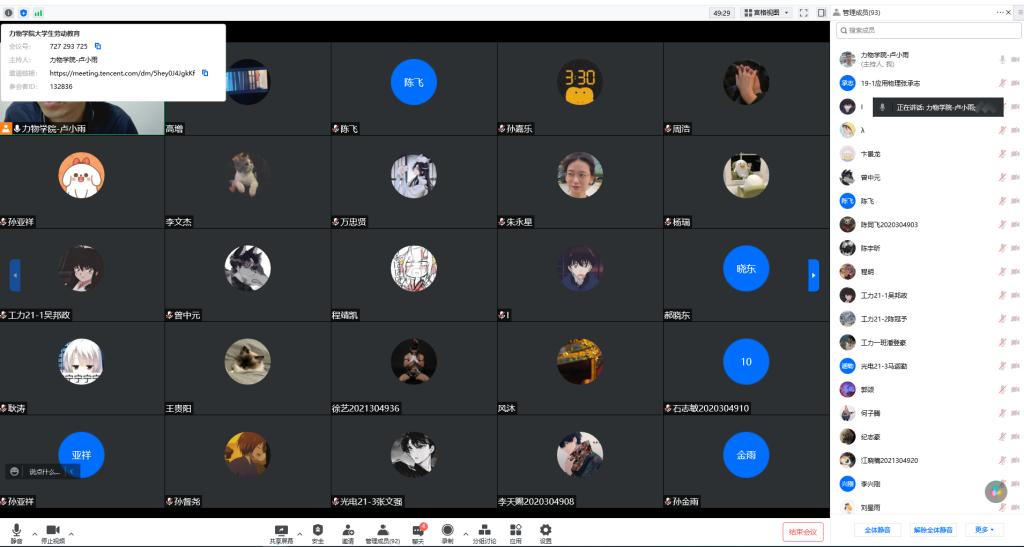 线上学习,树立正确的劳动观念。4月24日晚,力物学院近两百名学生通过腾讯会议,线上收看劳动教育课《大国工匠》视频。《大国工匠》讲述了不同岗位劳动者用自己的灵巧双手,匠心筑梦的故事。他们在平凡岗位上默默坚守,孜孜以求,追求职业技能的完美和极致,最终成为某个领域不可或缺的人才,跻身“国宝级”技工行列。