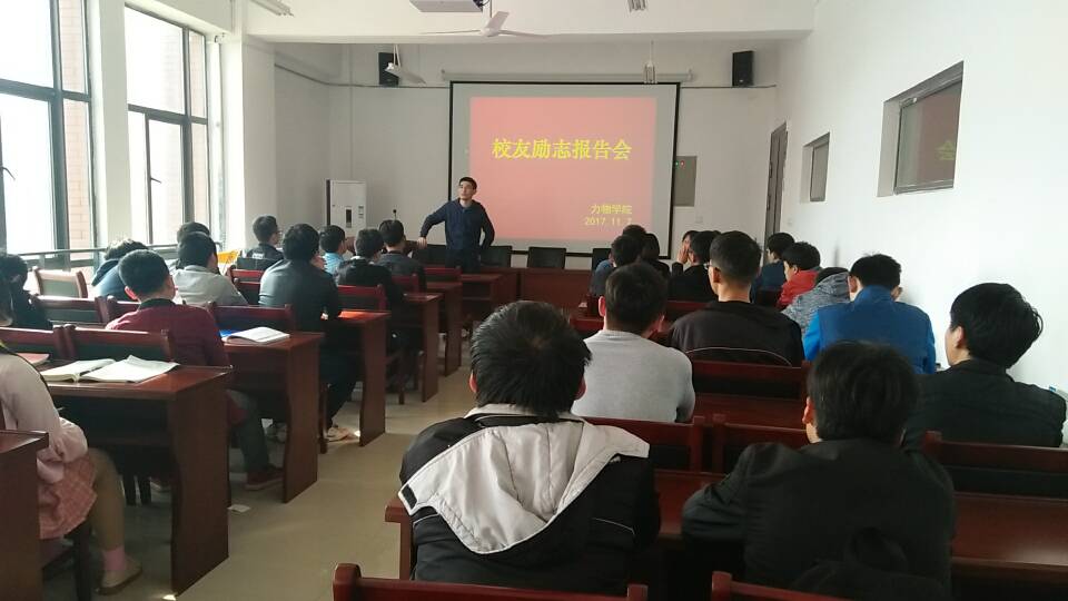 11月7日下午,力物学院邀请计算机及应用1997级校友王璐和通信工程专业2013级校友马倩在学院三楼报告厅举行校友励志报告会。学院2014级毕业生100余人听取了报告。