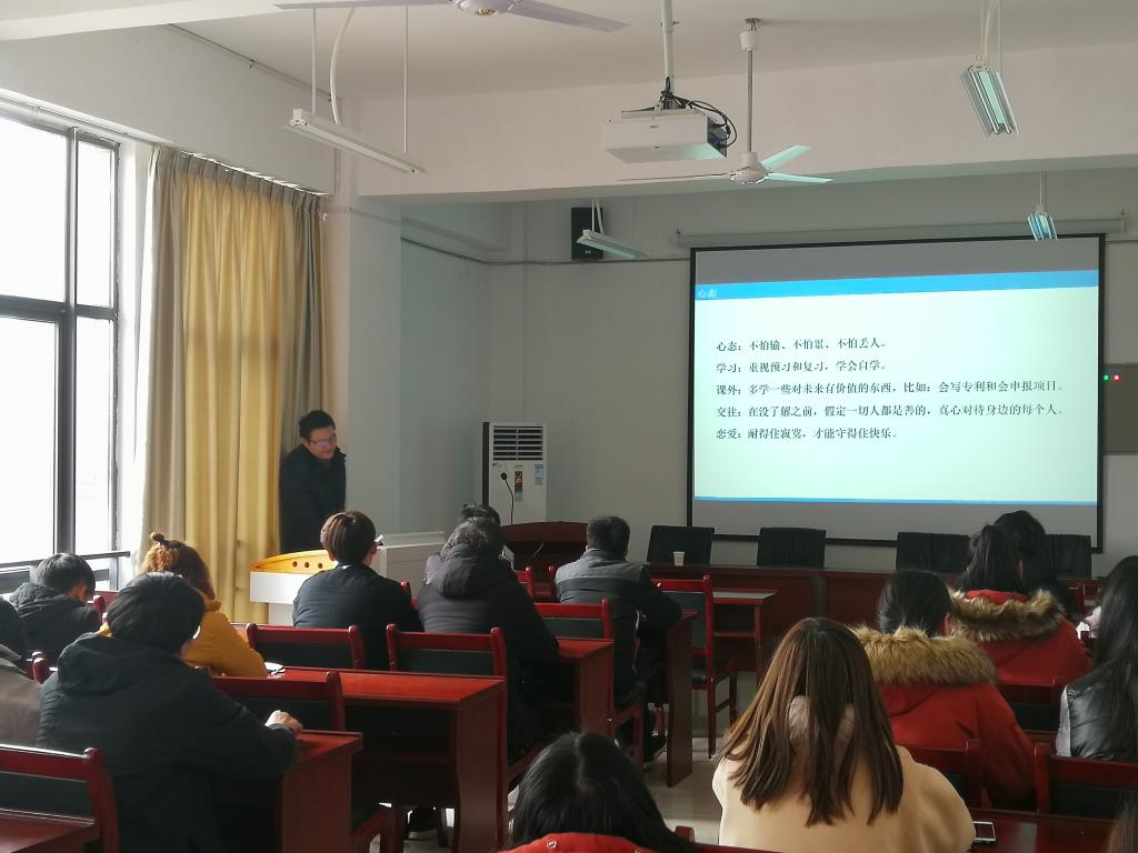 报告会上,他首先分享了自己在大学以及研究生时候的一些事迹,鼓励同学们在大学期间要树立明确的奋斗目标,保持积极向上的心态,充实度过大学时光。随后,他讲述自己在创办江苏中企科技服务有限公司过程中遇到的困难和艰辛,告诉同学们做任何事都不能轻言放弃,鼓励同学们做任何事都要有信心。最后,他结合实例,向同学们重点介绍了如何申请专利和参加创新创业等方面的知识,同学们纷纷表示受益匪浅。