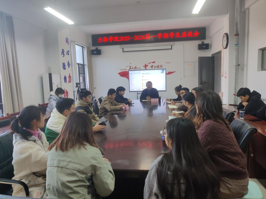 为深入践行“以生为本”的育人理念,精准对接学生成长需求,持续提升教学管理与服务质量,12月5日下午,力物学院在学院会议室A320召开2025-2026学年第一学期学生座谈会。学院领导班子、各系教师代表、各年级各专业学生代表齐聚一堂,本次会议由学院党委书记孙东升主持。