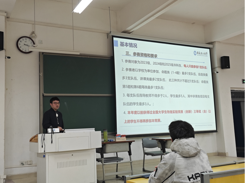 为推进学院创新创业及学科竞赛工作,提高学生实践和创新能力,3月22日下午,力物学院在明理102教室举办学科竞赛讲座。讲座由副院长卢小雨主持。