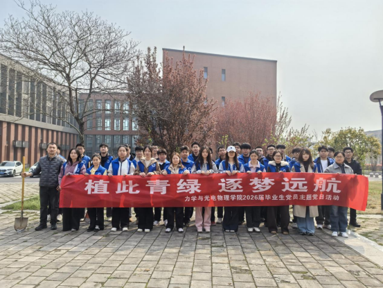 4月1日上午,力学与光电物理学院组织2026届全体毕业生党员,在学院“劳动教育基地”开展了一场别开生面的主题党日植树活动。本次活动以“植此青绿,逐梦远航”为主题,引导毕业生党员在亲手植绿中厚植家国情怀、坚定理想信念。