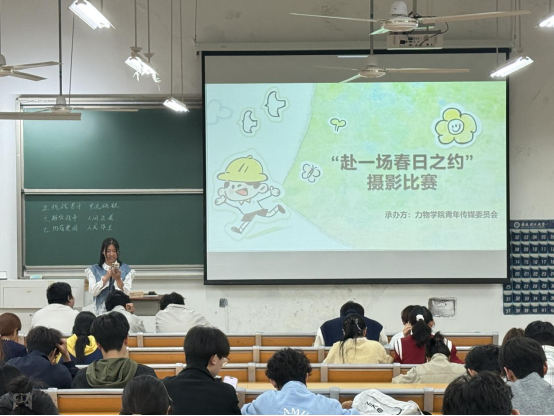 为丰富校园文化生活,提升学生审美素养与艺术感知力,4月7日,力学与光电物理学院在天工楼106教室成功举办“赴一场春日之约”主题摄影比赛。本次活动以光影为媒,引导同学们在镜头中捕捉春日生机、记录青春美好,吸引了众多摄影爱好者踊跃参与。