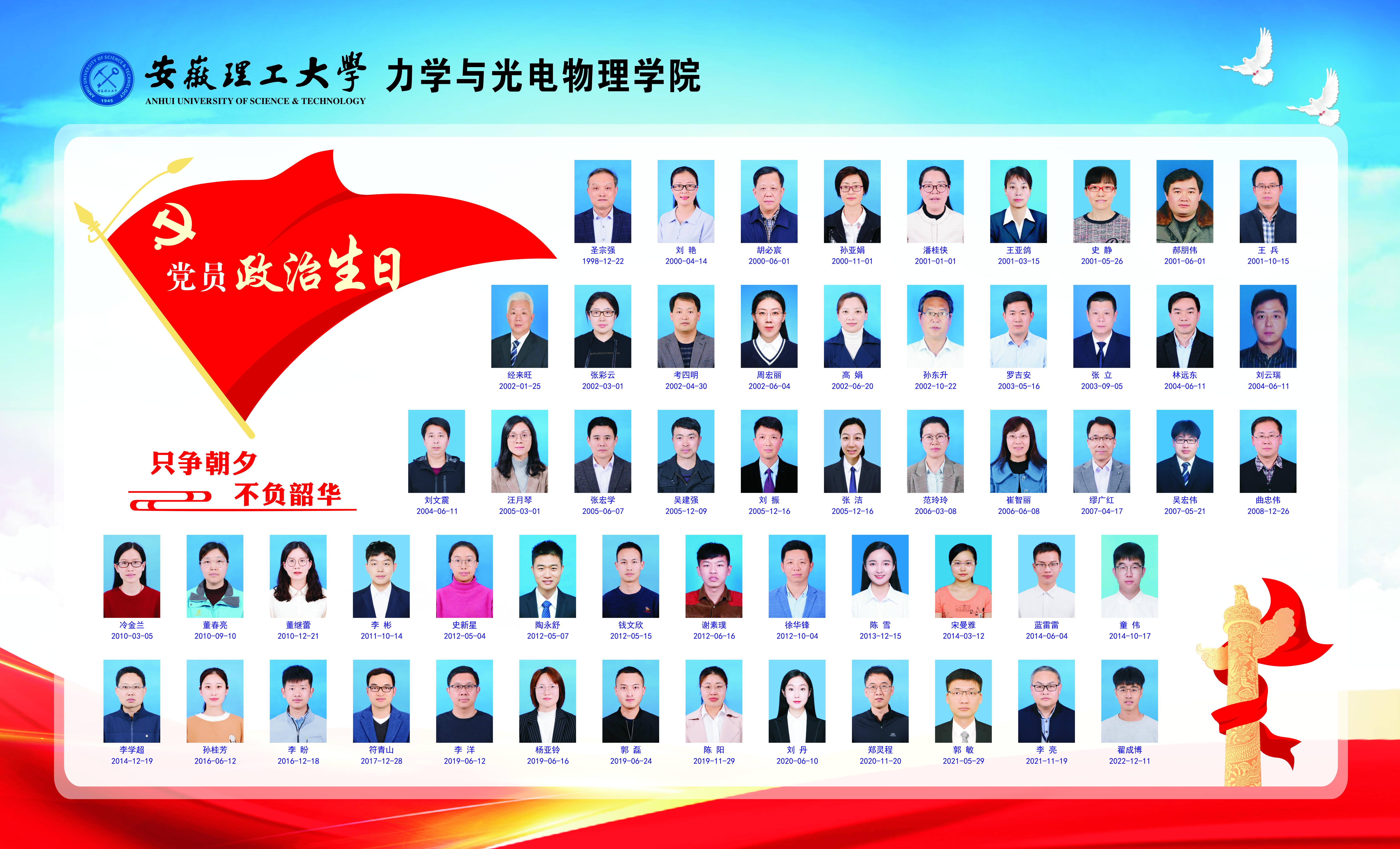 近期,力物学院党委精心设计制作了“党员政治生日墙”,把党员身份亮出来,以此引导党员不忘初心、牢记使命,回忆党组织的培养历程,强化党员宗旨意识,更好地发挥党员的先锋模范作用。