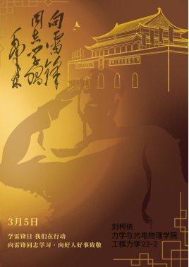 此外,力物学院还组织雷锋精神宣讲、集中观影、知识竞赛等多种方式弘扬雷锋精神,帮助同学进一步明白“雷锋”已不仅仅是一个名字,“雷锋精神”也不是一个人的精神,她是中华民族闪亮的精神坐标。