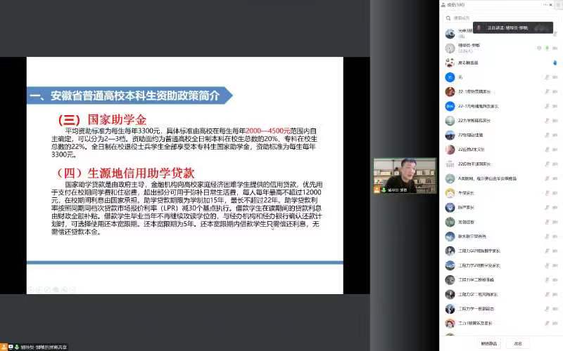 学院资助宣传大使王卫民同学结合自身情况,分享了党和国家的资助政策。在交流互动环节中,家长们对学生的日常学习和生活等方面的表现进行了提问,辅导员进行了全面的答疑。最后,学院向学生家长表示感谢,并致以新春祝福。
