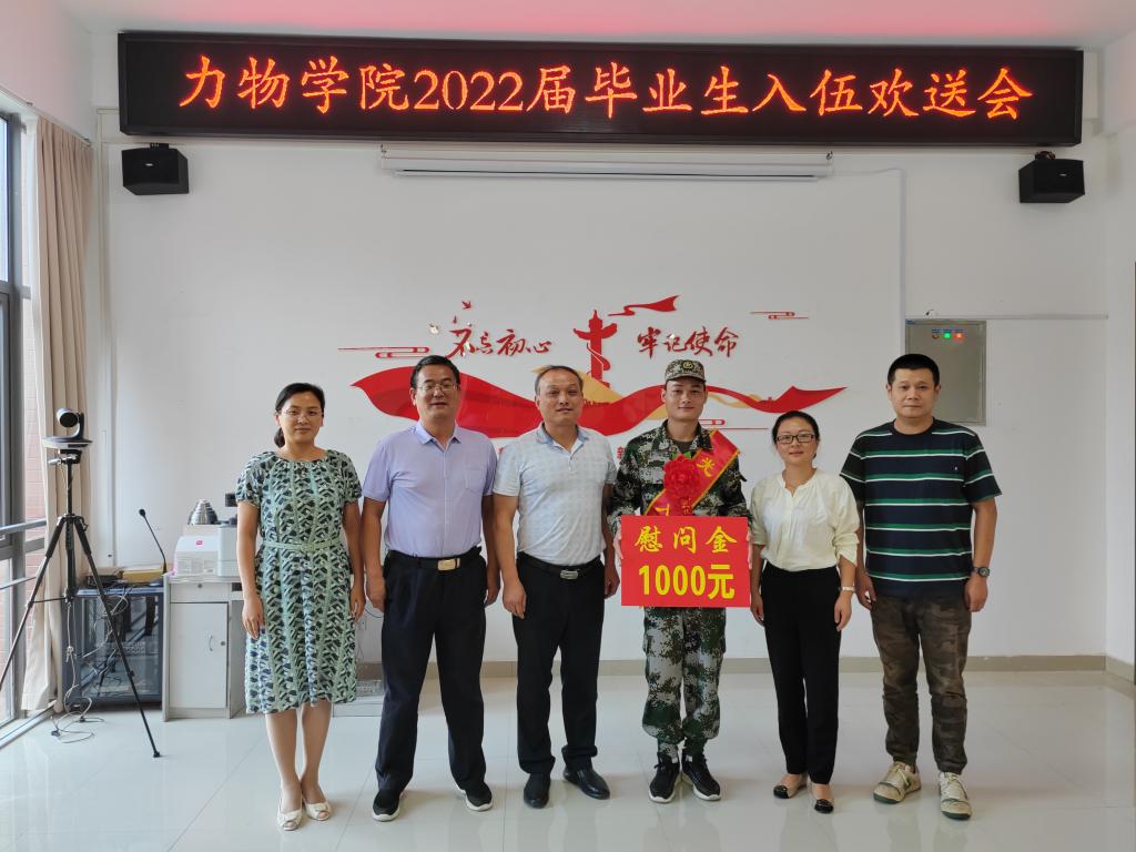 9月6日上午,力物学院举办2022年秋季大学生应征入伍欢送会,温馨送别2022届入伍毕业生,学院领导班子、2023届毕业生代表、辅导员等参加了会议。会议由党委副书记孙东升主持。