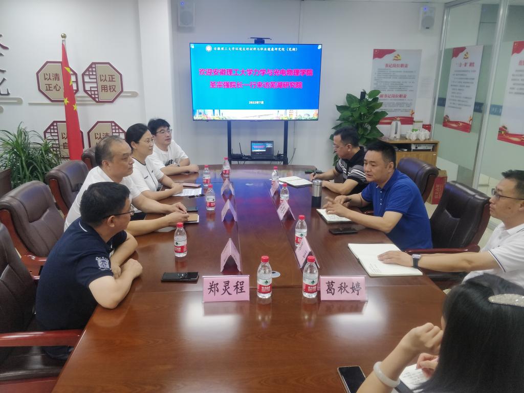 为进一步深化校企合作、提高人才培养质量,7月13日,力物学院副院长(主持工作)圣宗强、副院长高娟、光电物理系主任李洋等一行5人走访了安徽理工大学环境友好材料与职业健康研究院(芜湖),围绕校企合作、人才培养、专业申报等方面开展了深入交流。并在研究院副院长石建军陪同下考察调研了东旭光电、映日科技、格林开思茂、新辰光学等企业,深入探讨交流了人才培养、科学研究、技术培训等事宜。