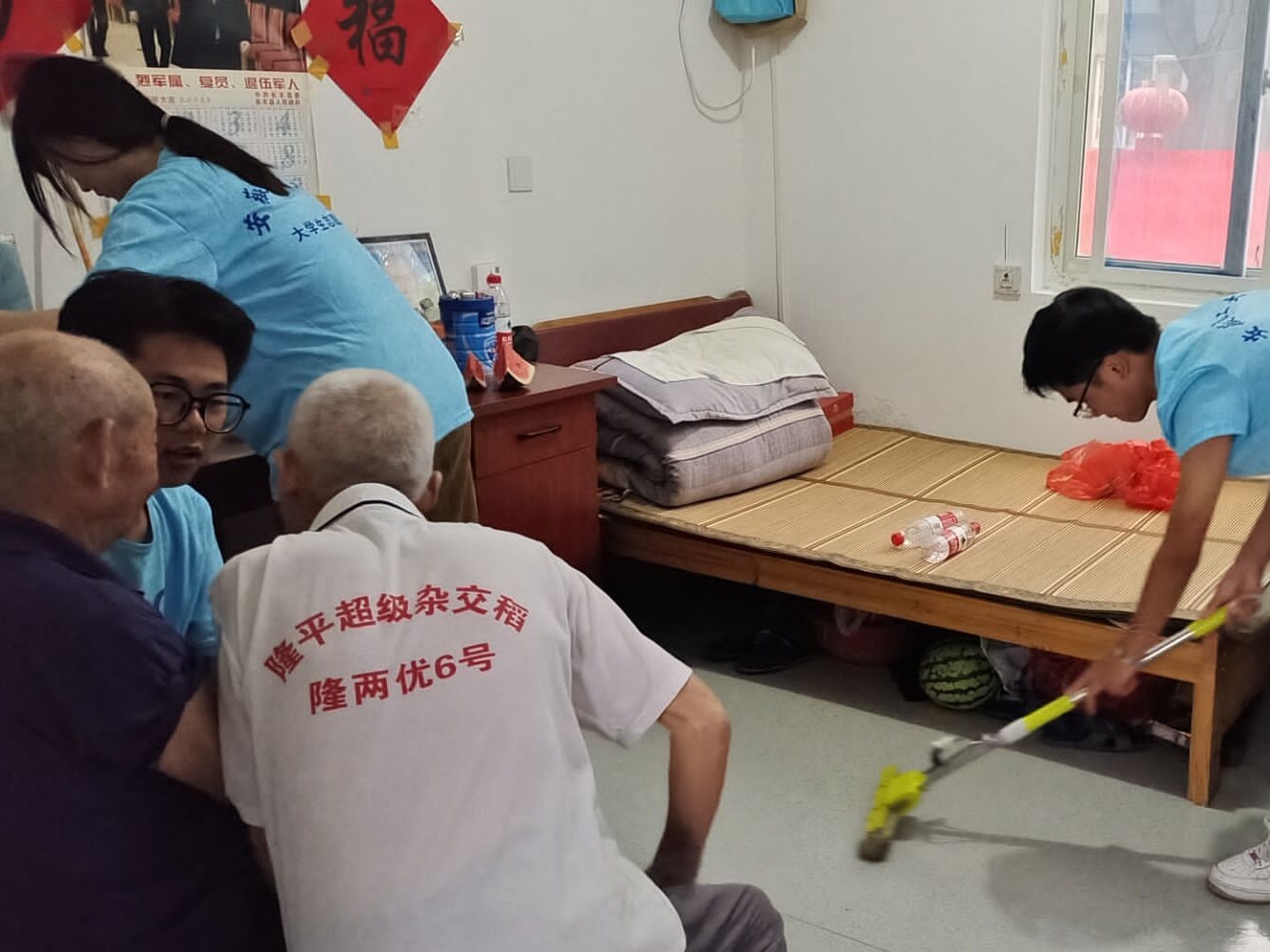 情系敬老院,爱满夕阳红。尊老、敬老、爱老是中华民族的传统美德,在左店镇中心敬老院,院长热情接待了团队一行并详细介绍了敬老院相关情况,队员们分工合作,有的进入了老人的房间,跟他们聊家常,拉近与老人之间的距离,有的则在在敬老院食堂内,剁肉馅、拌调料、包饺子,为老人们准备丰富的晚餐。整个慰问活动持续了4个小时,平日里冷清的敬老院变的热闹起来,志愿者们不仅为老人们送来了健康,更送来了欢乐,让老人们感受到孩子们的尊敬与关爱。