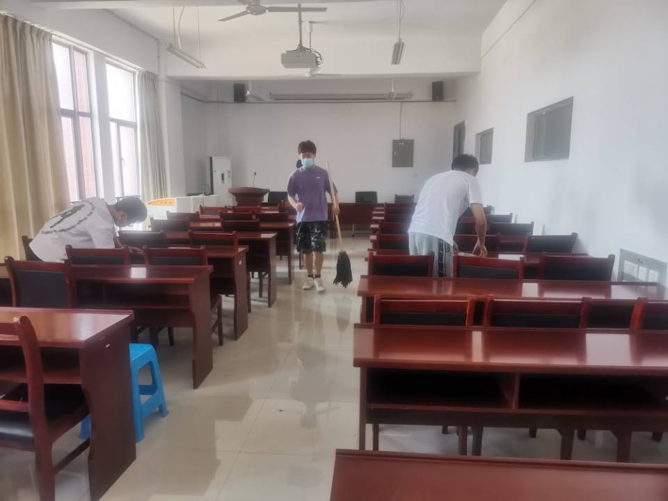 义务劳动,创造美丽环境。4月24日,学院组织大学生们对学院实验室、会议室、报告厅等进行清扫。劳动过程中,学生干部、学生党员充分发挥带头作用,率先行动,以身作则;同学之间相互配合,扫地、拖地、倒垃圾、擦仪器、抹桌子,在打扫中不忘细节,对窗台上的灰尘也进行了彻底的清洁,使学院环境焕然一新,展现了大学生的劳动风采。
