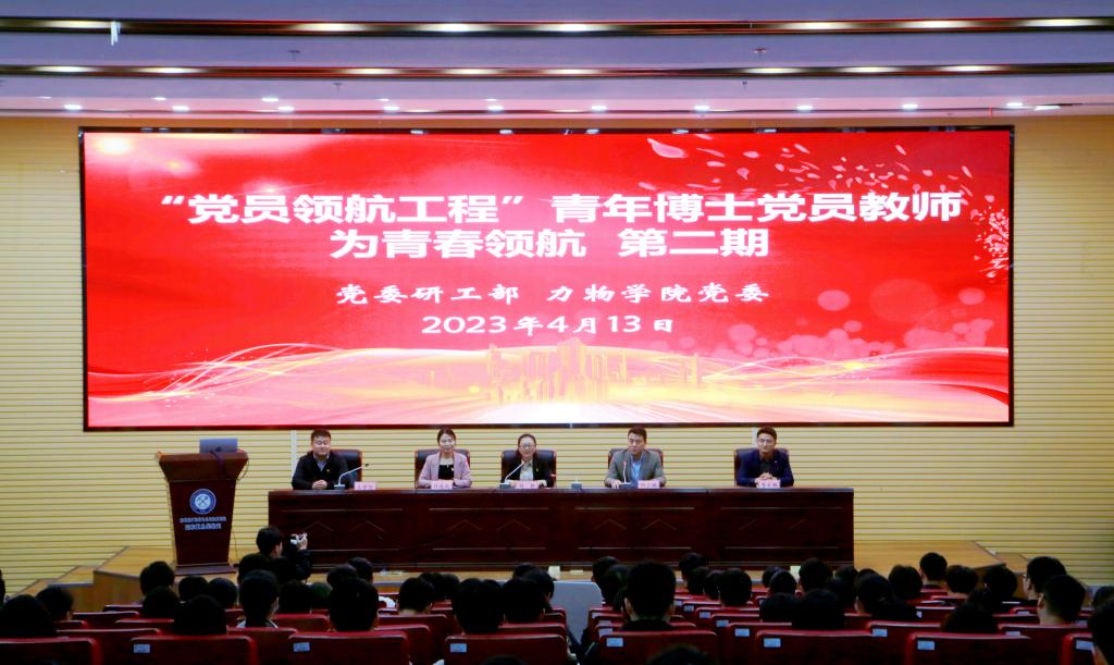 4月13日晚,由党委研工部和力物学院党委联合举办的“青年博士党员教师为青春领航”报告会在国家重点实验室一楼报告厅举办。党委研工部副部长、研究生院副院长何云鹏,力物学院青年博士教师、辅导员和研究生、本科生近300人参加了报告会。报告会由力物学院党委书记刘艳主持。